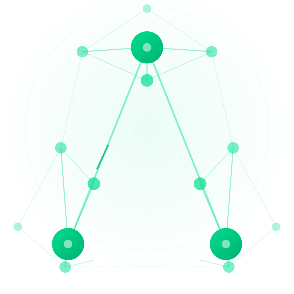 - Three core nodes form the primary triangle structure